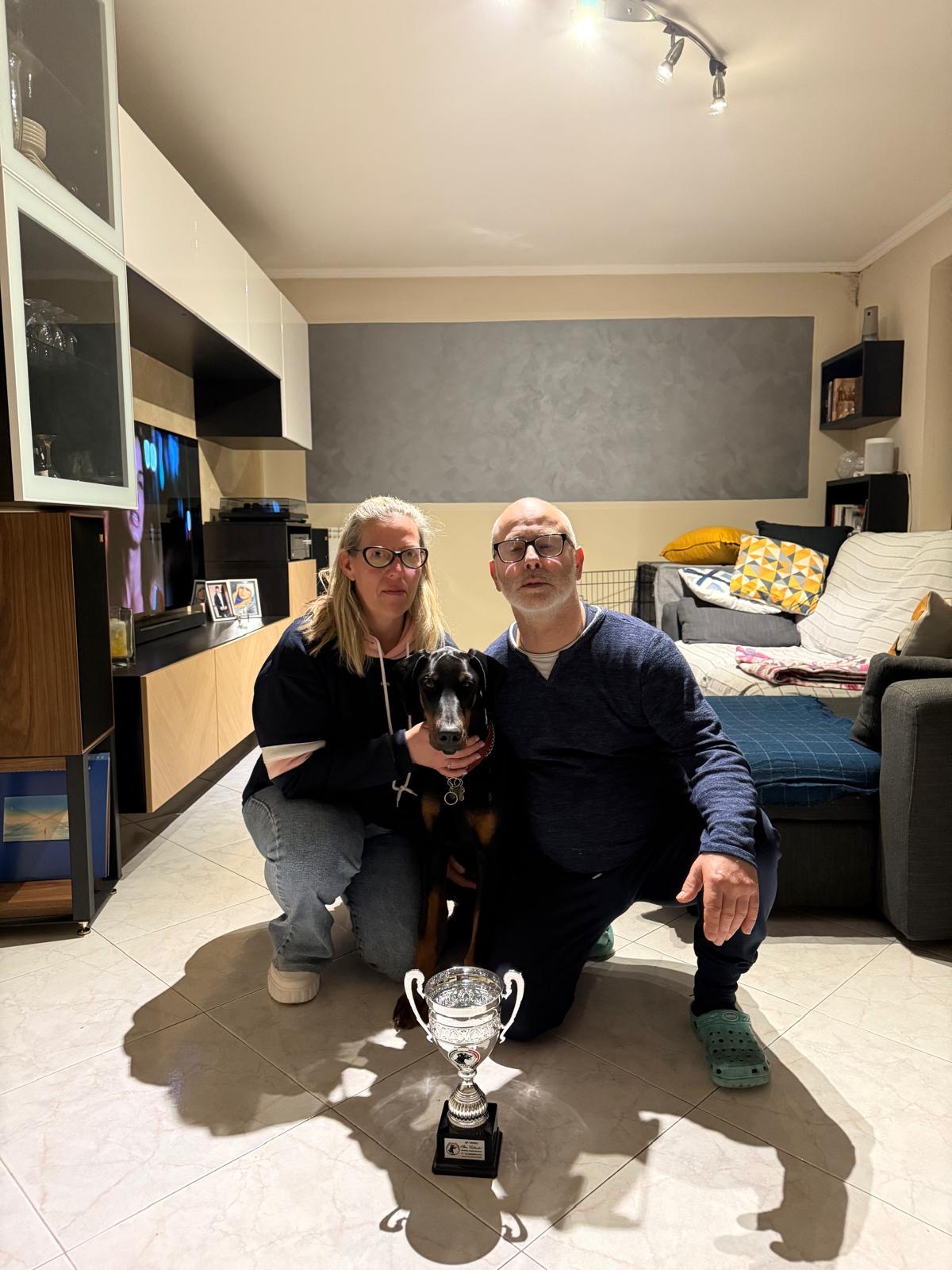 Pubblicato da Gianluca a 7 Agosto 2025 Categorie Maschi Data7 Agosto 2025 SessoMaschio Data di nascita26/08/2024 RazzaDobermann Caratteristiche del cane PedigreePadre : Vikar di Ca’ Zars’ Madre : Olà di Casa Gaia Propr.: Allev. di Casa Gaia Salute BellezzaCaliandro marzo 25 : classe Junior – 4° classificato -Molto Promettente Altre foto + pedigree Immagini collegate: Condividi12 Post Correlati7 Agosto 2025SumoLeggi altro7 Agosto 2025Spritz detto TangoLeggi altro7 Agosto 2025StrikeLeggi altro